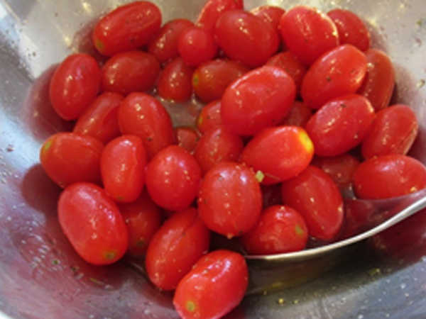 自社農園で収穫した新鮮な野菜を、引き続き当社運営の食堂でご提供しております。今回は、ナスの煮びたし、ミニトマトのマリネ、やみつきキュウリの漬物として、夏野菜の美味しさを存分に味わっていただけるメニューにしました。